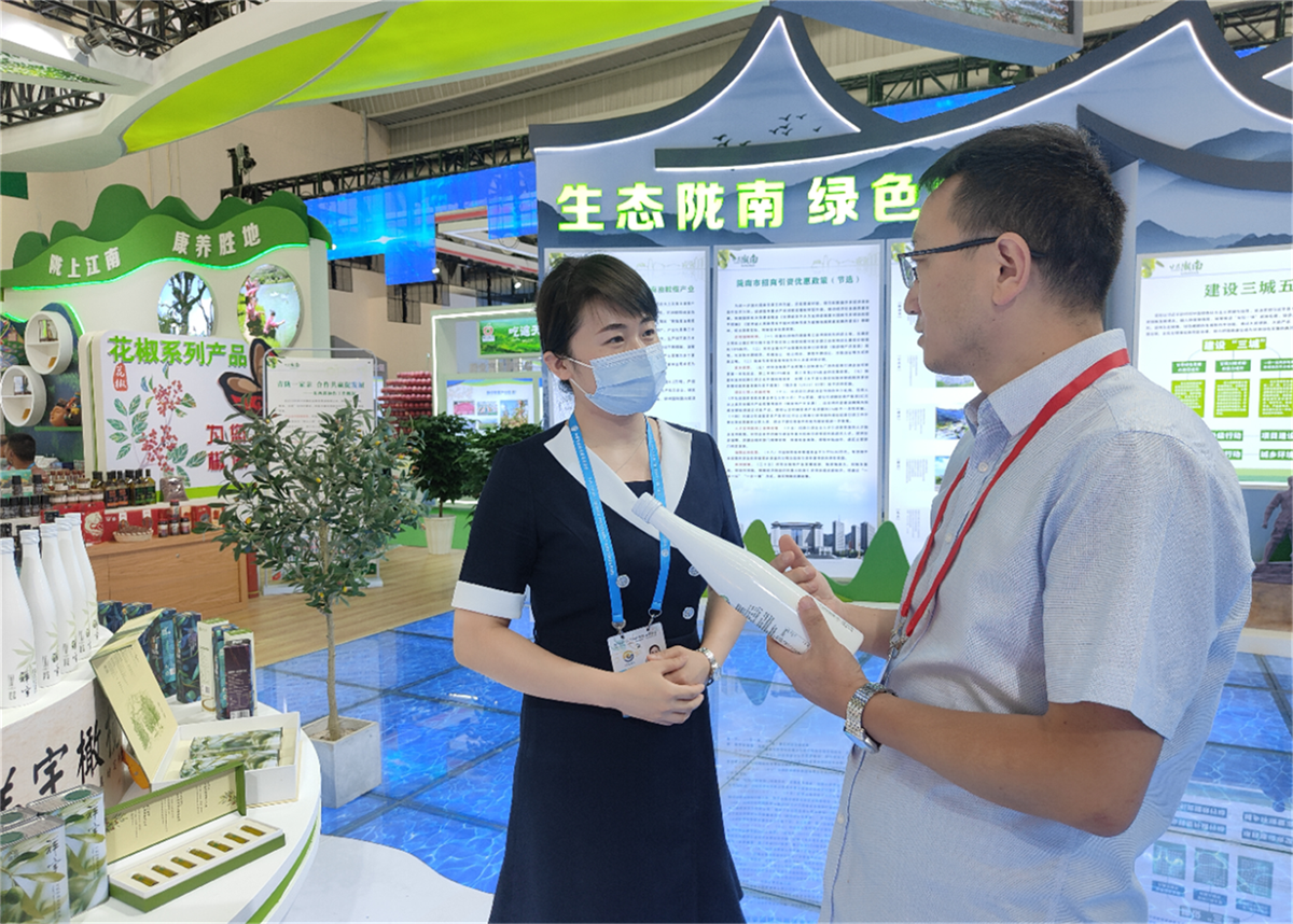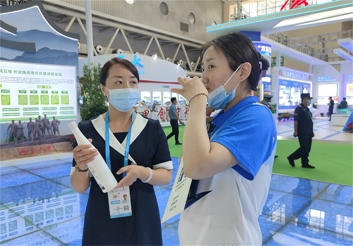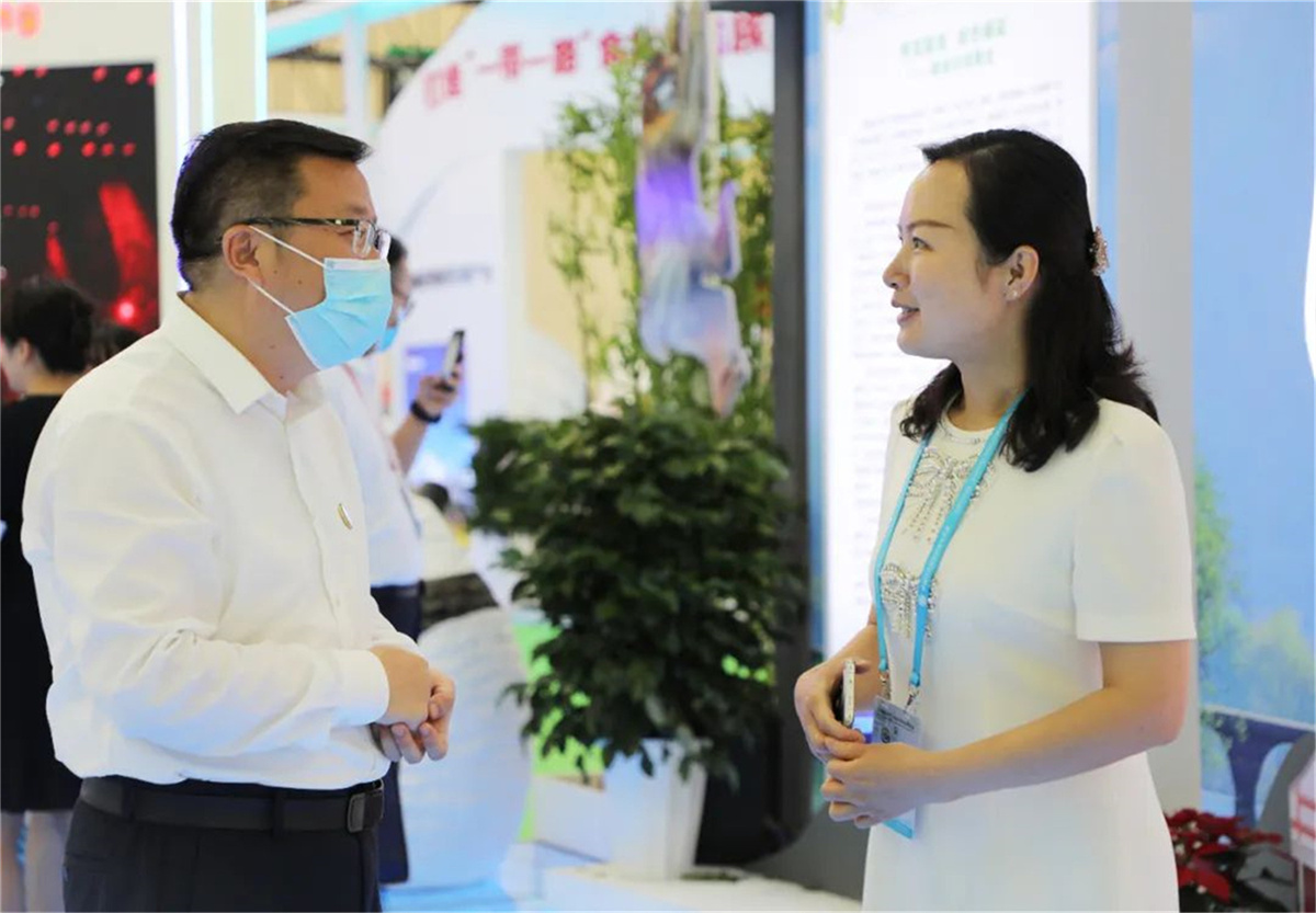 省市領(lǐng)導走進隴南館,祥宇公司董事長劉玉紅邀請各位領(lǐng)導品鑒了祥宇系列產(chǎn)品,