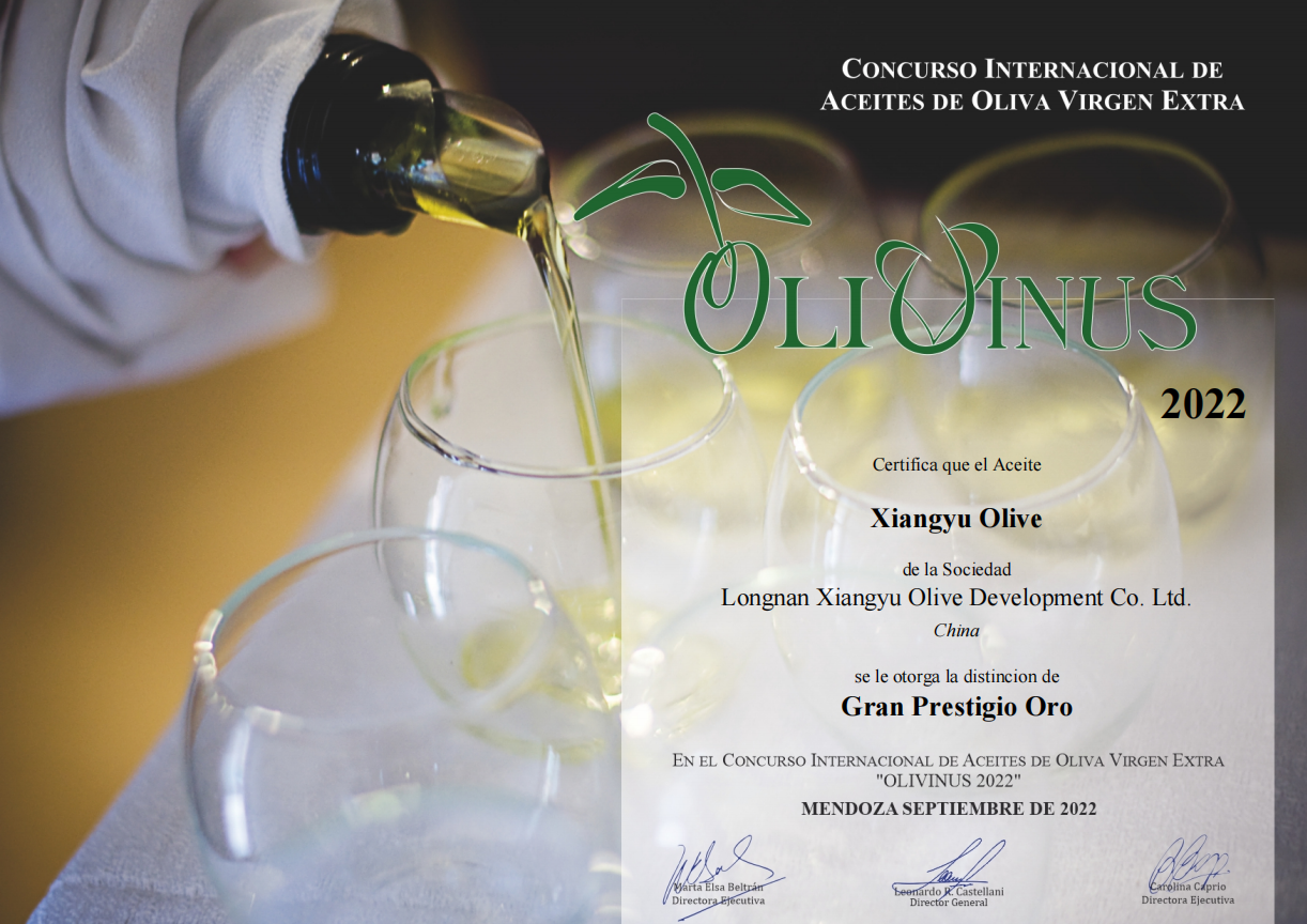 特級初榨橄欖油在阿根廷OLIVINUS - 國際特級初榨橄欖油比賽中榮獲三枚金獎,