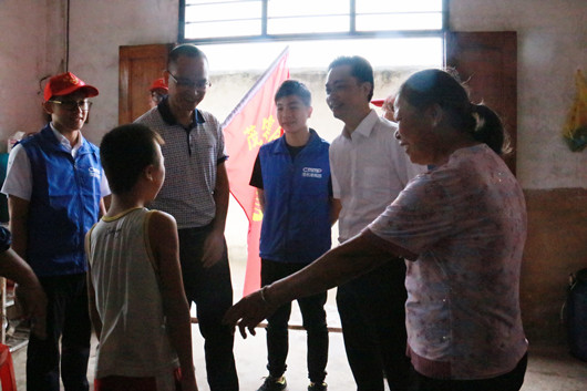 集團黨委副書記、紀委書記、工會主席肖炳璋與五保戶的孤兒親切交談