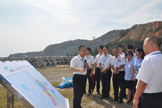 大家首先來到博賀新港區(qū)東防波堤項(xiàng)目建設(shè)現(xiàn)場。在項(xiàng)目展示平臺(tái)上,羅大方總裁親自向大家闡釋了集團(tuán)“以深水大港為依托,以石化倉儲(chǔ)物流產(chǎn)業(yè)為支柱,揚(yáng)長避短,走差異化發(fā)展道路”的戰(zhàn)略發(fā)展規(guī)劃,詳細(xì)介紹了博賀港區(qū)碼頭的建設(shè)情況,并對(duì)控股公司參觀學(xué)習(xí)人員表達(dá)了殷切期望,勉勵(lì)控股公司同志在工作中加強(qiáng)學(xué)習(xí),為集團(tuán)未來發(fā)展需要做好能力儲(chǔ)備。