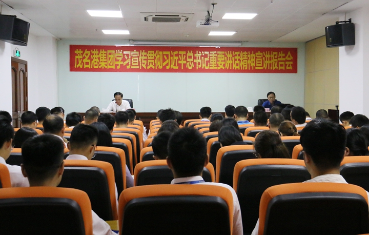 | 為進(jìn)一步學(xué)習(xí)宣傳貫徹習(xí)近平總書(shū)記參加廣東代表團(tuán)審議時(shí)的重要講話(huà)精神,幫助全體干部職工更好地領(lǐng)悟習(xí)近平總書(shū)記重要講話(huà)深刻內(nèi)涵,4月26日上午,茂名港集團(tuán)邀請(qǐng)市委宣講團(tuán)成員、廣東石油化工學(xué)院教授閆亞平作習(xí)近平總書(shū)記重要講話(huà)精神專(zhuān)題宣講報(bào)告。集團(tuán)黨委書(shū)記、董事長(zhǎng)劉乃英主持會(huì)議。集團(tuán)總裁羅大方、黨委副書(shū)記肖炳璋、副總裁楊超燦以及機(jī)關(guān)全體人員、各下屬公司經(jīng)營(yíng)班子和黨員職工代表100多人聆聽(tīng)了報(bào)告會(huì)。