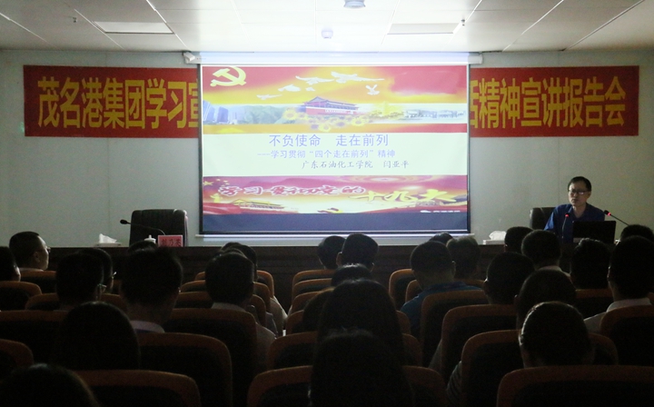 宣講報(bào)告會(huì)上,閆亞平教授以《“不負(fù)使命走在前列”——學(xué)習(xí)貫徹“四個(gè)走在前列”精神》為題,通過(guò)日常接地氣的小事例拋磚引玉地對(duì)廣東經(jīng)濟(jì)結(jié)構(gòu)、歷史改革進(jìn)程、產(chǎn)業(yè)發(fā)展短板以及茂名經(jīng)濟(jì)新機(jī)遇等方面更加通俗易懂的進(jìn)行闡述。并逐一對(duì)“四個(gè)走在前列”、粵東西北區(qū)域協(xié)調(diào)發(fā)展等重要精神理念進(jìn)行了理論上的解讀指導(dǎo)。 就如何結(jié)合集團(tuán)實(shí)際,進(jìn)一步深入學(xué)習(xí)貫徹落實(shí)好習(xí)總書(shū)記重要講話(huà)精神,劉乃英強(qiáng)調(diào),全體干部職工要緊密結(jié)合工作實(shí)際,切實(shí)把思想和行動(dòng)統(tǒng)一到總書(shū)記重要講話(huà)精神上來(lái),一是要把學(xué)習(xí)宣傳習(xí)近平總書(shū)記重要講話(huà)精神作為當(dāng)前首要政治任務(wù)和頭等大事,制定具體學(xué)習(xí)計(jì)劃,推動(dòng)學(xué)習(xí)工作有序、深入、全面開(kāi)展。二是要認(rèn)真落實(shí)新時(shí)代黨的建設(shè)總要求,堅(jiān)持黨管企業(yè)的方針,推動(dòng)集團(tuán)健康發(fā)展。三是實(shí)現(xiàn)打造高素質(zhì)專(zhuān)業(yè)化干部隊(duì)伍,營(yíng)造良好企業(yè)文化氛圍。