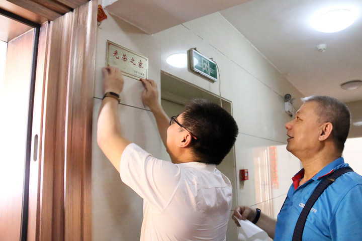 | 4月26日,集團(tuán)黨委副書記肖炳璋率領(lǐng)工作組一行,為集團(tuán)退役軍人職工及軍屬送上集團(tuán)崇高的敬意和誠(chéng)摯的慰問(wèn),并懸掛“光榮之家”牌匾。