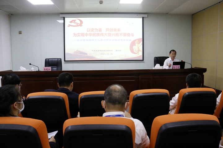 為深入學(xué)習(xí)貫徹黨的十九屆六中全會(huì)精神, 引導(dǎo)廣大黨員干部把思想和行動(dòng)統(tǒng)一到全會(huì)精神上來(lái),持續(xù)推動(dòng)黨史學(xué)習(xí)教育走深走實(shí),12月24日,集團(tuán)舉辦學(xué)習(xí)貫徹黨的十九屆六中全會(huì)精神宣講報(bào)告會(huì)。茂名市委黨史學(xué)習(xí)教育宣講團(tuán)成員陳文欽應(yīng)邀作專題報(bào)告。集團(tuán)黨委委員、副總裁楊超燦主持會(huì)議。集團(tuán)黨委班子成員和集團(tuán)機(jī)關(guān)、各下屬企業(yè)黨員干部職工代表60余人參加報(bào)告會(huì)。