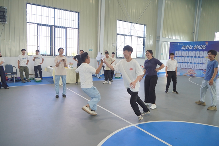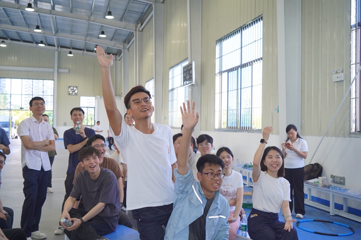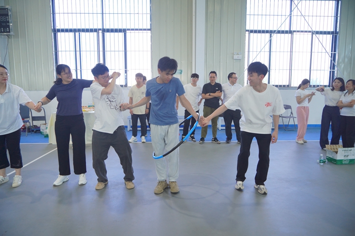 隨后,青年員工們前往體育館開(kāi)展互動(dòng)游戲。大家在主持人的引導(dǎo)下開(kāi)展了妙趣橫生的“破冰環(huán)節(jié)”,大家互相分組認(rèn)識(shí)后,氣氛漸濃,闖關(guān)作戰(zhàn)正式拉開(kāi)帷幕。在闖關(guān)任務(wù)中,各組隊(duì)員凝心聚力、團(tuán)結(jié)協(xié)作,依次完成了“迎風(fēng)奔跑”“突破困境”“一圈到底”以及“趣味猜字謎”等項(xiàng)目。青年們開(kāi)動(dòng)腦筋,踴躍互動(dòng),現(xiàn)場(chǎng)歡聲笑語(yǔ),大家在闖關(guān)游戲中相互協(xié)作,增進(jìn)了彼此之間的了解和認(rèn)識(shí),建立了默契和友誼。
