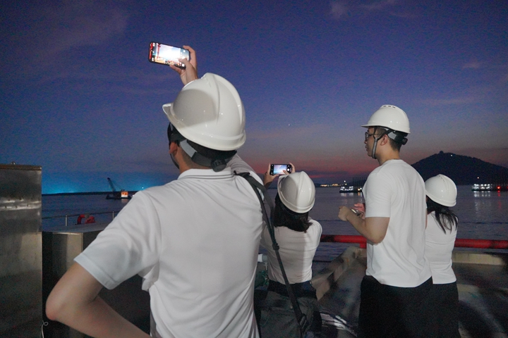 游戲結(jié)束后,大家走進(jìn)了集團(tuán)碼頭庫(kù)區(qū)泊位,直觀感受港區(qū)碼頭的宏偉氣勢(shì),親眼目睹了正在建設(shè)的30萬(wàn)噸級(jí)原油碼頭工地忙碌景象,欣賞了港灣的夕陽(yáng)美景。通過(guò)現(xiàn)場(chǎng)參觀,大家對(duì)茂名港集團(tuán)的發(fā)展歷程、生產(chǎn)建設(shè)、企業(yè)文化有了更深刻的了解。