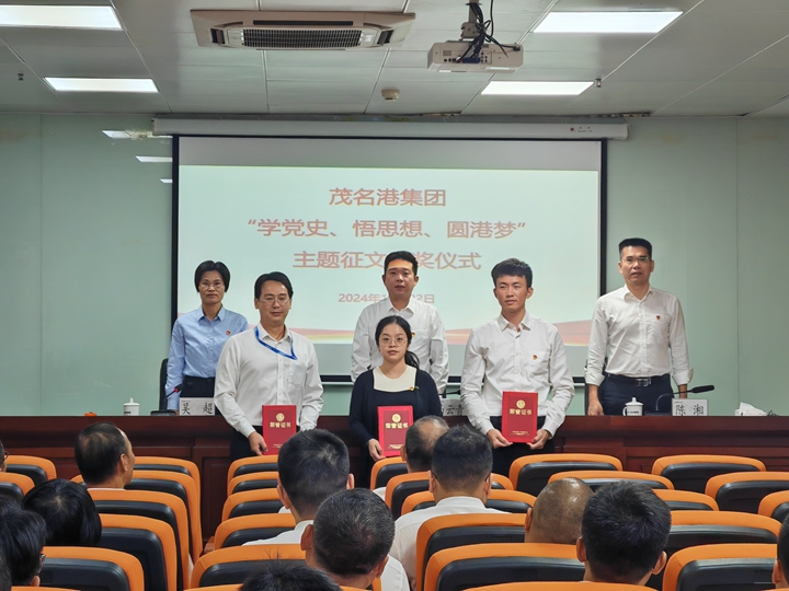 11月22日,茂名港集團舉行了“學黨史、悟思想、圓港夢”主題征文比賽頒獎儀式。集團工會主席馬云青出席會議并講話,為獲獎員工頒發(fā)榮譽證書?偛弥黻愊鎱㈩C獎。