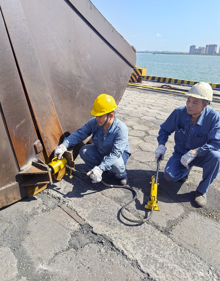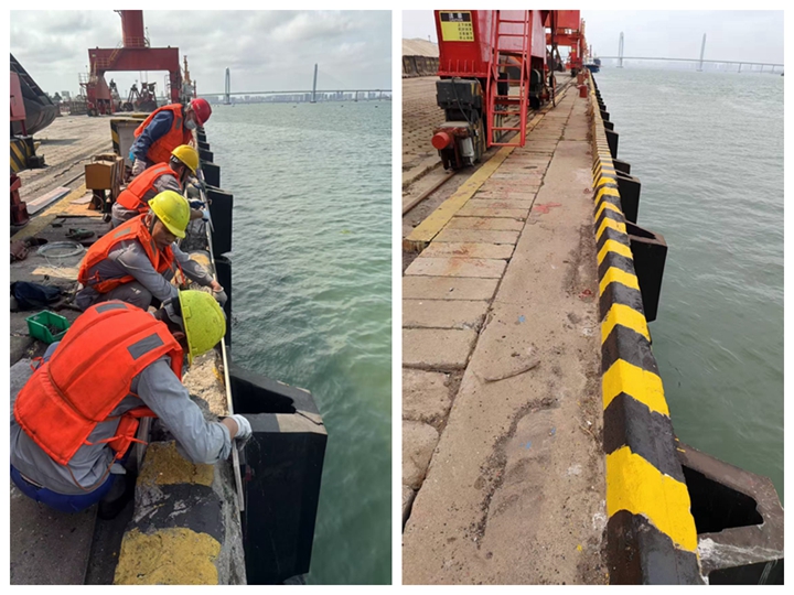 在日常安全巡查中,發(fā)現(xiàn)港口經(jīng)營公司萬噸級碼頭前沿攔水坎,出現(xiàn)局部混凝土損壞、鋼筋裸露的情況,若不及時修復,將對海洋安全產(chǎn)生環(huán)境污染。按常規(guī)流程,該項修復工作費用高、工期長且需外委專業(yè)施工隊,但公司黨支部在“書記項目”推進會上明確要求:“在確保安全與質量的前提下,能自主完成的絕不外委!”港口經(jīng)營公司黨支部書記劉芳芳主動領題,牽頭組織黨員干部,集結涵蓋結構工程、機械維修、安全管理等專業(yè)的黨員技術骨干,把“硬骨頭”變成“練兵場”。 “攔水坎修復要兼顧船舶靠泊時產(chǎn)生的擠壓碰撞力,混凝土配比、鋼筋加固都得精準!秉h支部組織委員、副總經(jīng)理黎陽生是港口經(jīng)營公司技術“總工程師”,他帶著黨員維修組白天測量損壞面積、記錄鋼筋變形數(shù)據(jù),晚上研究修復技術規(guī)范,反復驗算修復方案。為節(jié)省成本,他們翻遍倉庫“淘”出閑置的高強度螺紋鋼,自主切割焊接;利用碼頭現(xiàn)有的混凝土攪拌設備,按實驗配比調配修補材料,經(jīng)過多次試驗,最終確定“基層清理+鋼筋網(wǎng)加固+分層澆筑+防水警示涂層”的修復工藝。