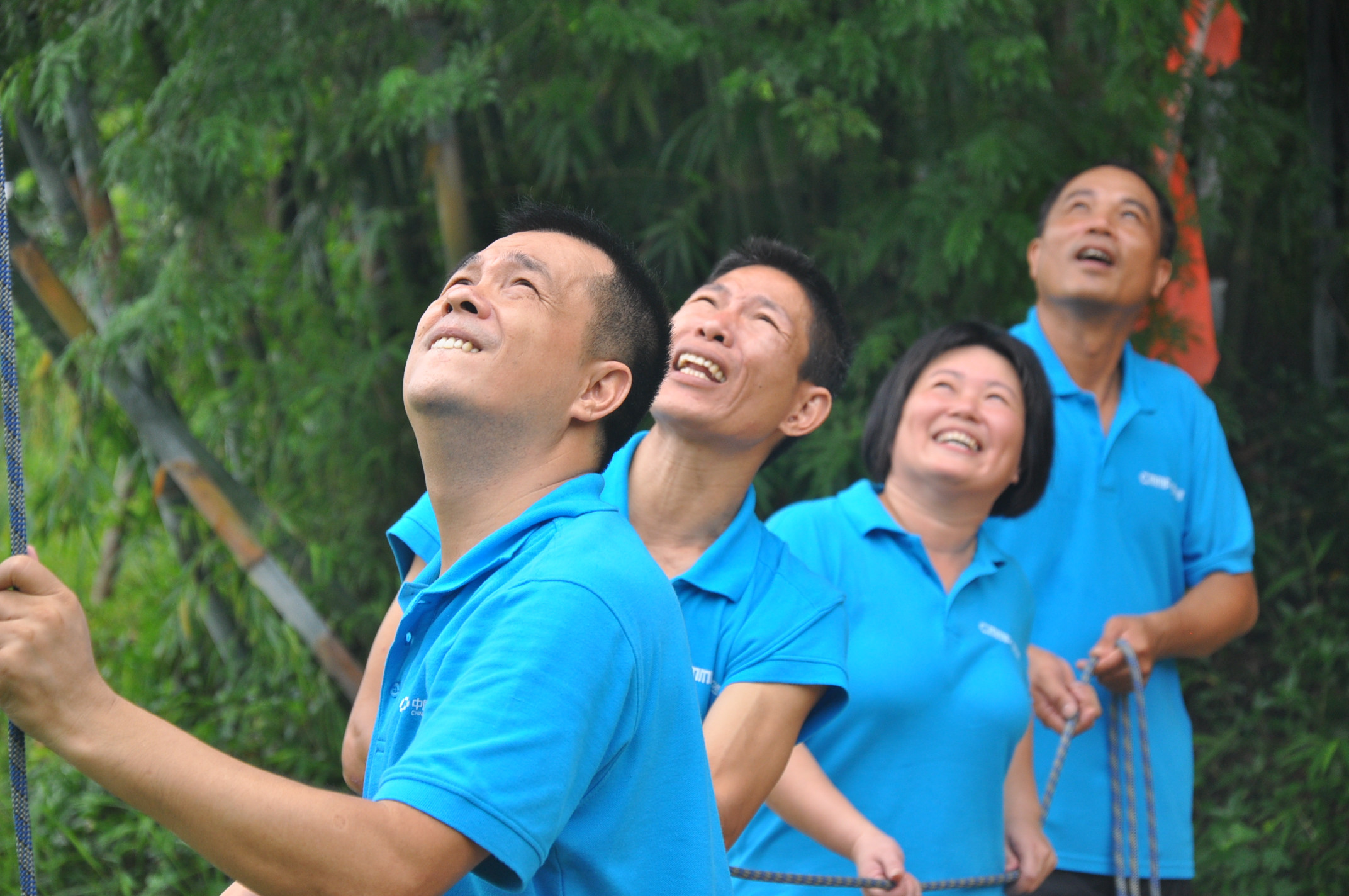 17日,在拓展教練的組織下,拓展活動(dòng)訓(xùn)練營正式開始;顒(dòng)以企業(yè)文化融入為主線,先后通過開展“共同進(jìn)退”“穿越電網(wǎng)”“高空項(xiàng)目”“七巧板”“勝利墻”等項(xiàng)目,以體驗(yàn)式培訓(xùn)的方式讓每一為參訓(xùn)員工了解領(lǐng)悟團(tuán)隊(duì)與個(gè)人、責(zé)任與使命的關(guān)系,引導(dǎo)員工樹立團(tuán)隊(duì)意識(shí),培養(yǎng)團(tuán)隊(duì)信任,促成團(tuán)隊(duì)溝通,并通過體驗(yàn)活動(dòng)逐步導(dǎo)入茂名港集團(tuán)企業(yè)文化,促成了企業(yè)文化深入人心。